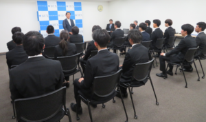式典の冒頭では、代表取締役井口 邦代表から内定者へ向けて激励の挨拶がありました。
